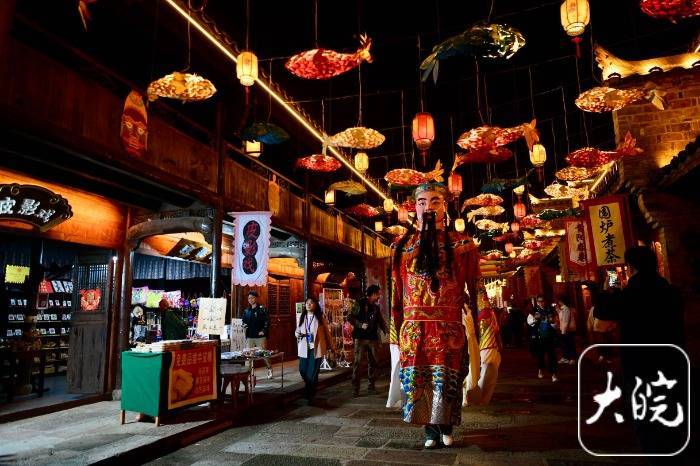 “这不仅是一场演出,更是对传统文化的创造性转化。”活动现场负责人介绍,傩仙镇通过“日游+夜游”全天候服务模式,让古老的傩戏以更年轻、更时尚的方式走进现代生活。街区内,傩文化展示、民俗表演、活动市集相互交融,游客既能欣赏原汁原味的傩戏表演,又能参与互动体验。